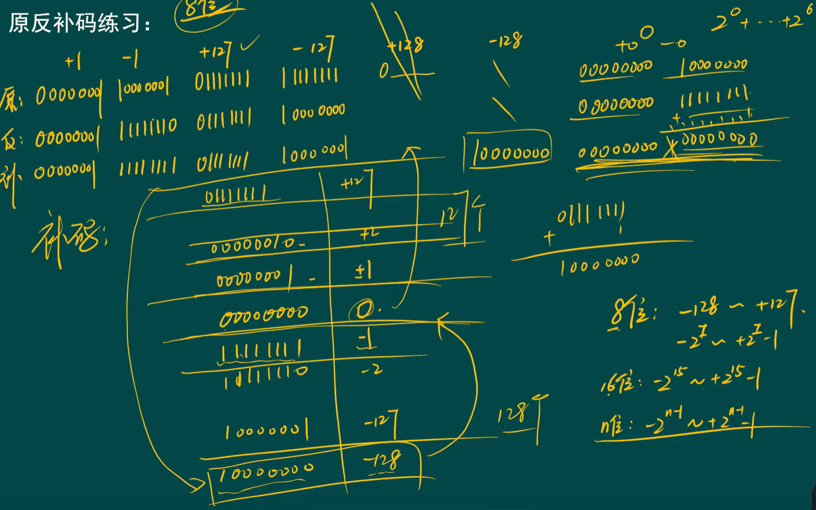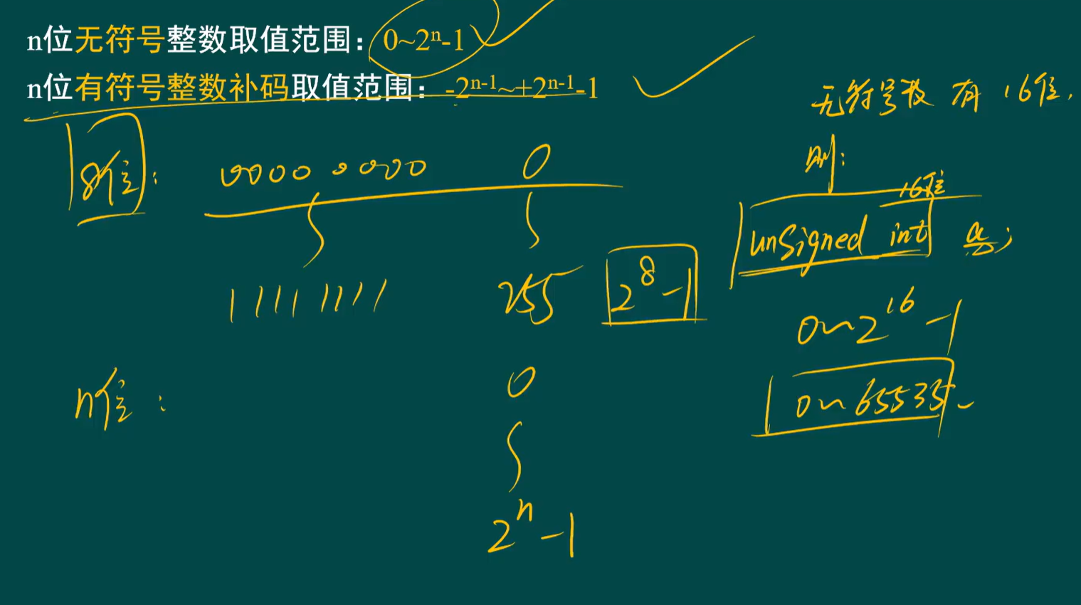 n位有符号整数补码取值范围:-2^(N-1) ~ 2^(N-1)