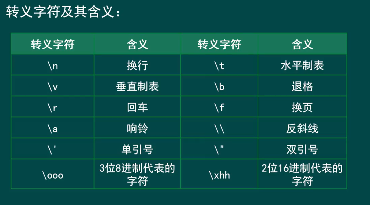 转义字符:反斜杠后跟着一个字符或一个代码值